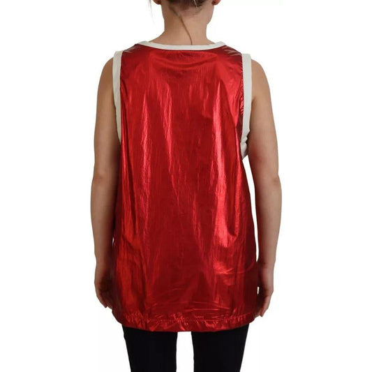بلوزة جيرسيه بدون أكمام بطبعة شعار دولتشي آند غابانا باللون الأحمر من النايلون