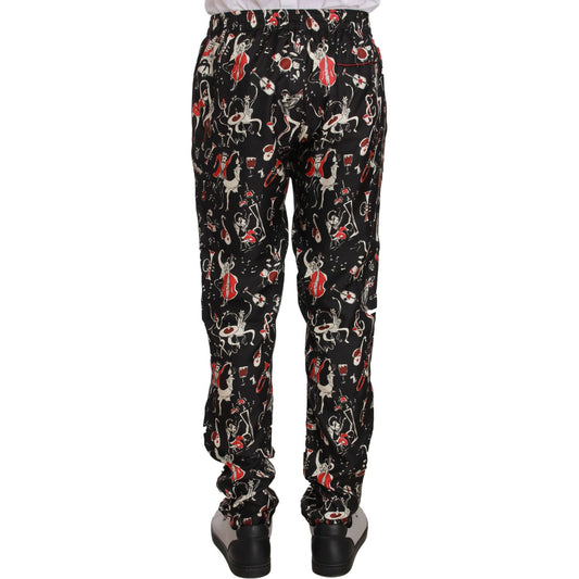 بنطلون دولتشي آند غابانا الأنيق المصنوع من الحرير الأسود مع طبعة حمراء