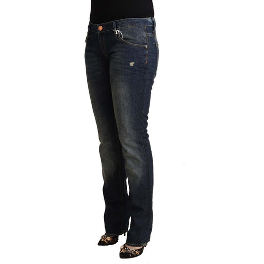Acht Blue Washed Cotton Mid Waist Flared Denim Jeans