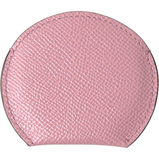 Dolce & Gabbana Pink Calfskin Leather Round Logo Hand Mirror Holder