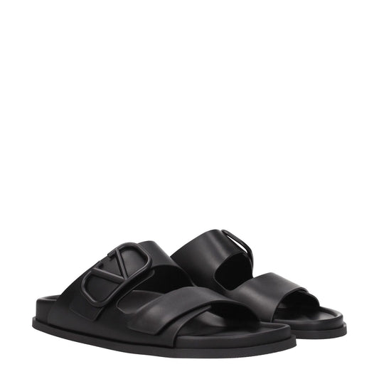 Valentino Garavani Black Leather Slippers