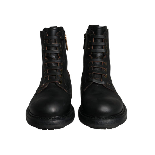 Dolce & Gabbana Black Leather Men Short Boots Lace Up Shoes