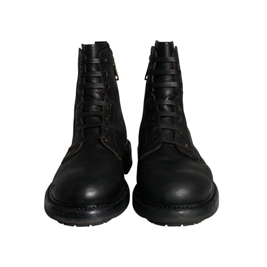 Dolce & Gabbana Black Leather Lace Up Ankle Boots Shoes