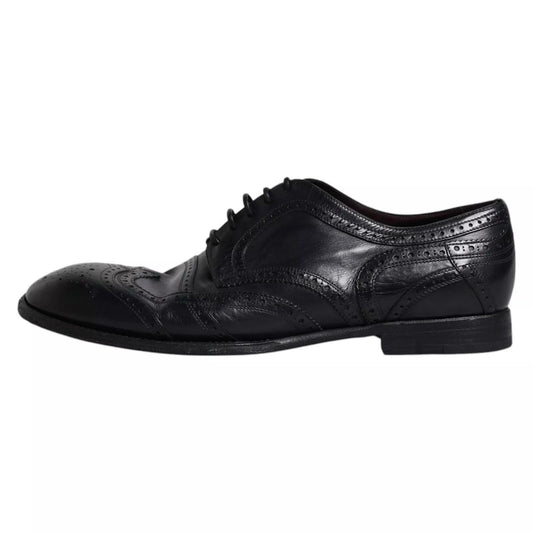 Dolce & Gabbana Black Leather Derby Wingtip Formal Shoes