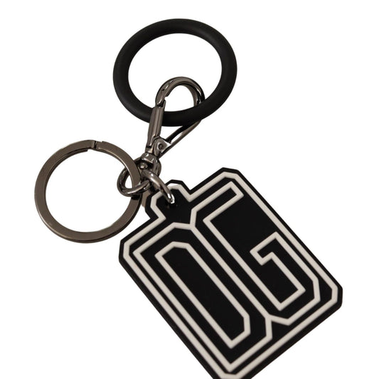Dolce & Gabbana Black White DG Rubber Logo Silver Men Keychain Keyring