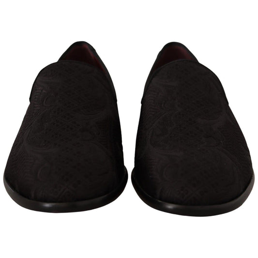 حذاء Dolce & Gabbana الأنيق المصنوع من قماش الجاكار باللون الأسود مع نعل مسطح