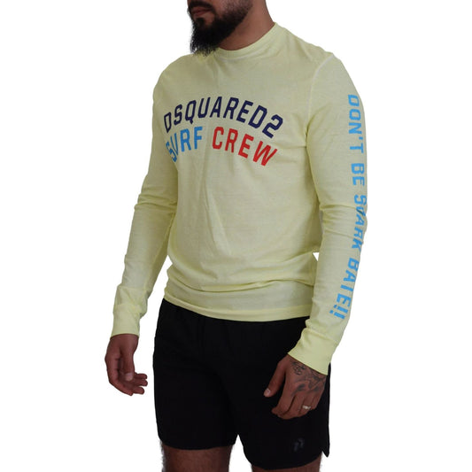 تي شيرت Dsquared² أصفر بطبعة ملونة بأكمام طويلة
