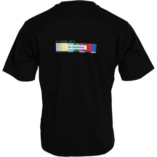 تي شيرت دولتشي آند غابانا أسود من القطن المزخرف برقبة دائرية