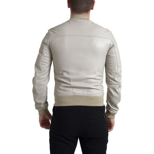 جاكيت بومبر جلدي كريمي من دولتشي آند غابانا