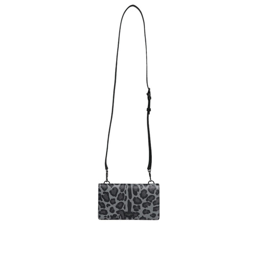 Dolce & Gabbana Black Gray Leopard Leather Bifold Card Slot Crossbody Bag