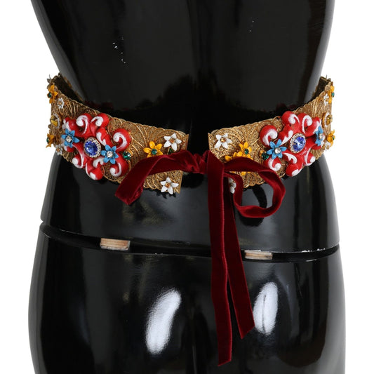 حزام خصر مزين بالكريستالات الزهرية الذهبية من دولتشي آند غابانا