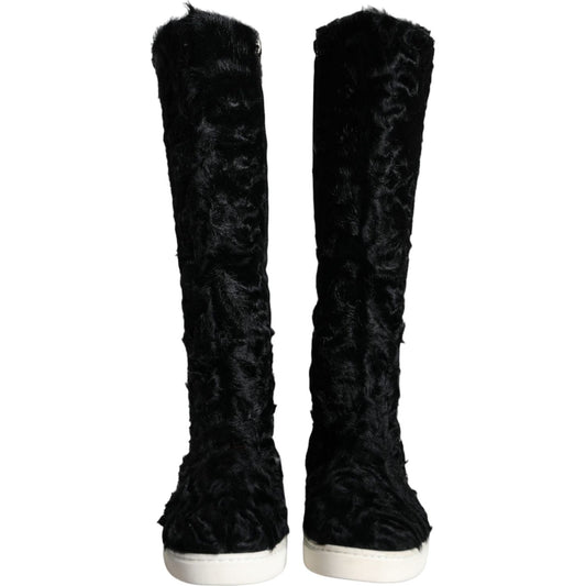 حذاء دولتشي آند غابانا من جلد الحمل شيانغاو باللون الأسود