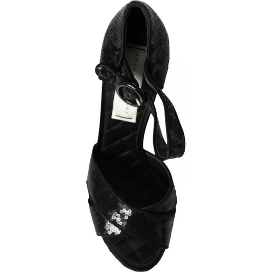 حذاء صندل بكعب عال من دولتشي آند غابانا باللون الأسود مزين بالترتر وحزام للكاحل