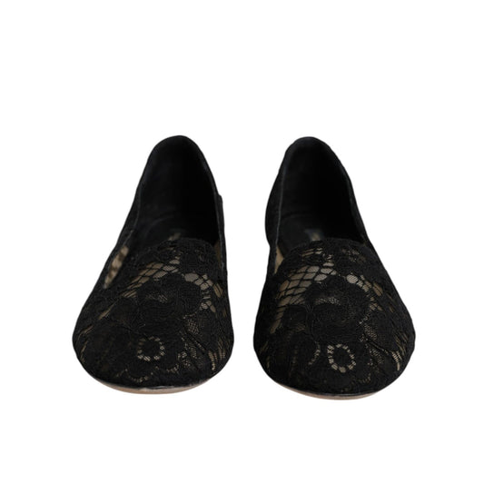 Dolce & Gabbana Black Taormina Lace Slip On Flats Shoes