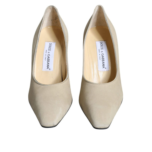 Dolce & Gabbana Beige Suede Leather High Heels Pumps Shoes