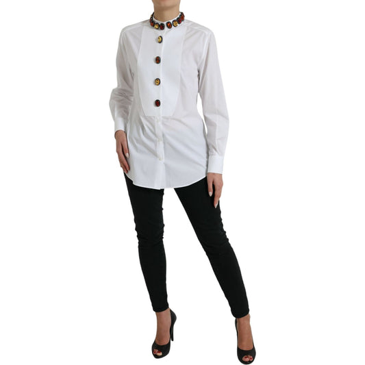 بلوزة قطنية بيضاء أنيقة مزينة بالكريستال من دولتشي آند غابانا
