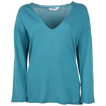 Alpha Studio cotton sweater with V-neck, cuffs and gathered hem