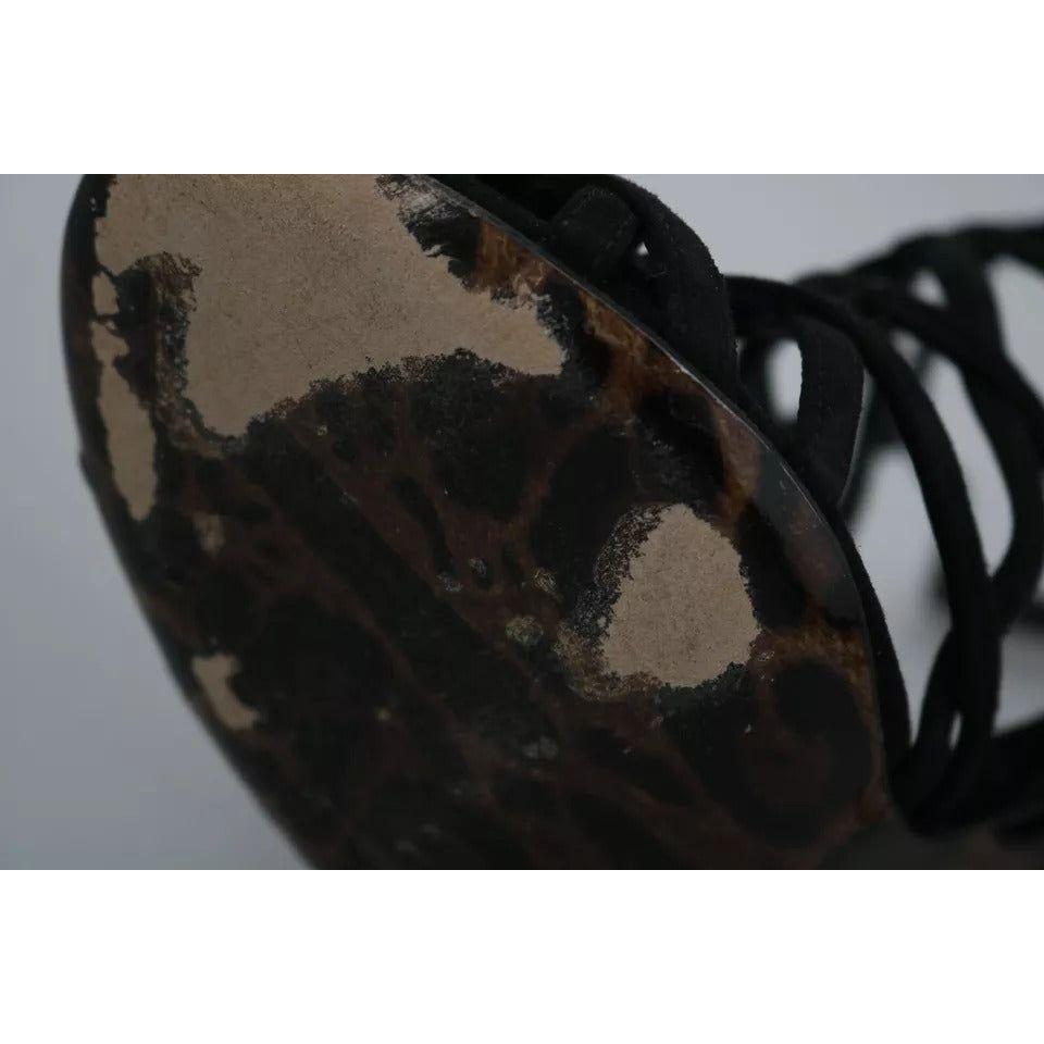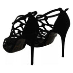 حذاء دولتشي آند غابانا من الجلد المدبوغ باللون الأسود بكعب عالٍ وحزام للكاحل
