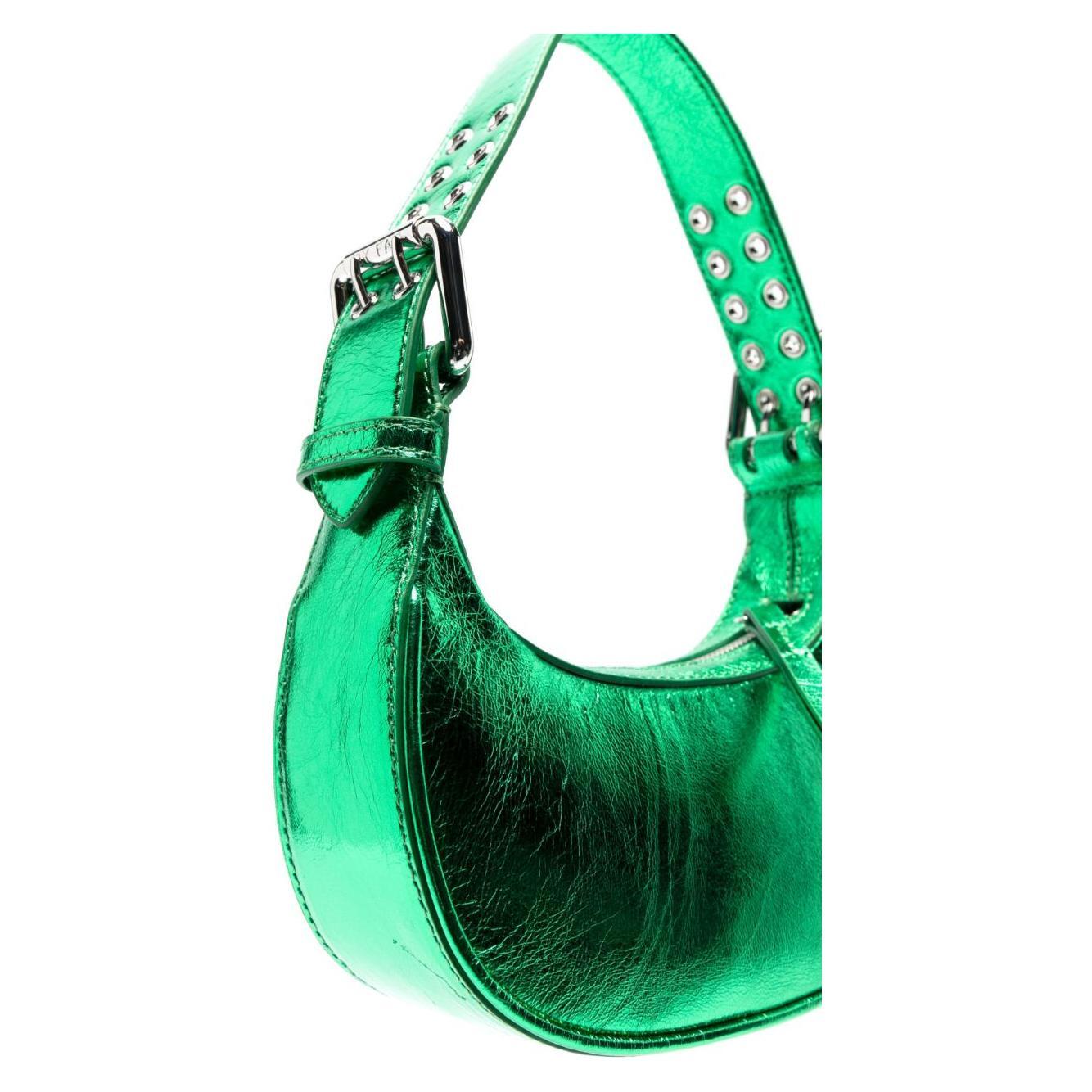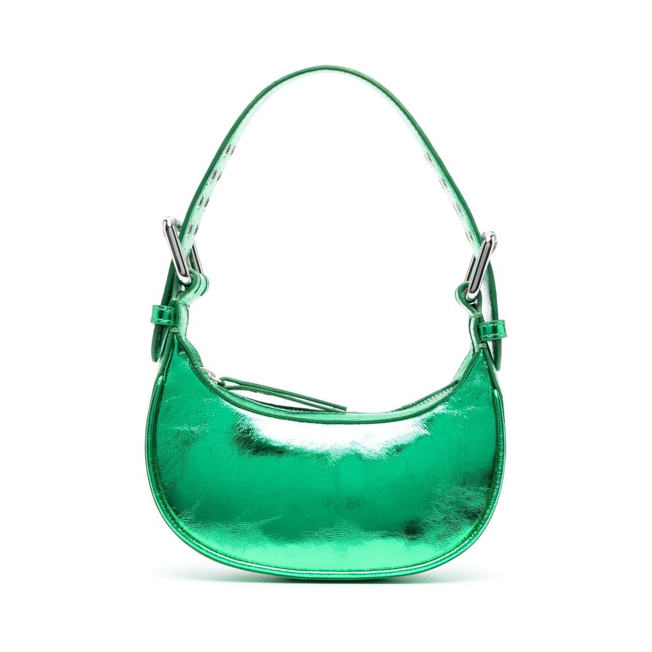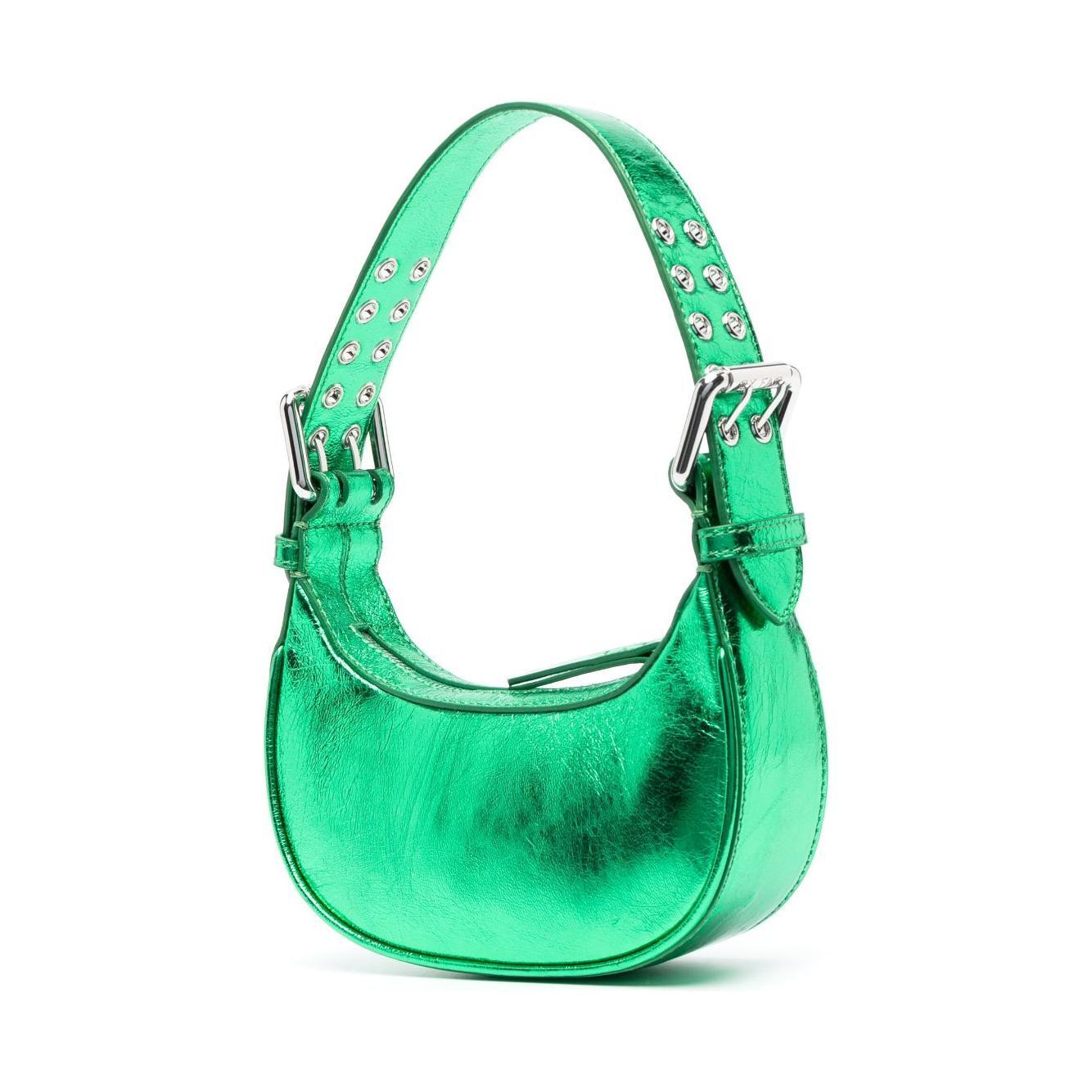 metallic-effect tote bag from BY FAR featuring green, metallic effect, top zip fastening, main compartment and single top handle. Mini Soho metallic leather shoulder bag Size and Fit - Width 7,48 in / 19 cm