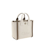 Chloé’s Carry Tote Bag is a stylish, multifunctional accessory made of cotton with contrasting leather details that accentuate its sophisticated appeal. Magnetic buttons on the side panels allow you to adjust the width of the bag for added convenience. The snap top closure provides security, while double flat handles and a removable and adjustable leather shoulder strap offer multiple carrying options, perfect for any occasion. The brand’s iconic monogram is visible on both the front and back, adding a distinctive touch. Inside, a welt pocket allows you to organize smaller items, while the brand’s signature on the side panels enhances the design with an exclusive and refined detail.