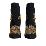 Dolce & Gabbana Black Gold Embroidery Slip On Boots Shoes