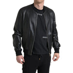 Dolce & Gabbana Black Leather Full Zip Bomber Men Jacket