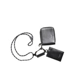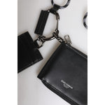 Dolce & Gabbana Black Leather Lanyard Zip Around Card Holder Wallet