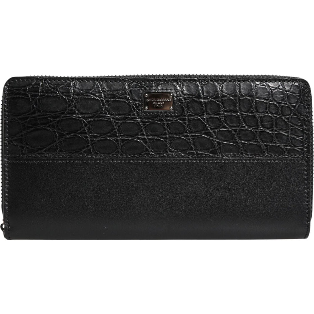 Dolce & Gabbana Black Leather Logo Plaque Zip Around Continental Wallet