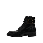 Dolce & Gabbana Black Leather Mid Calf Boots Lace Up Shoes