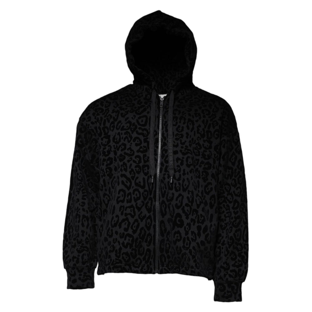 Dolce & Gabbana Black Leopard Cotton Hooded Full Zip Sweater