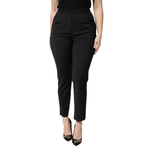Dolce & Gabbana Black Polyester High Waist Slim Pants