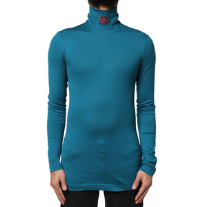 Dolce & Gabbana Blue Cotton Turtleneck Long Sleeves Sweater