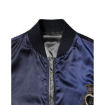 Dolce & Gabbana Blue Nylon DG Crown Full Zip Bomber Jacket