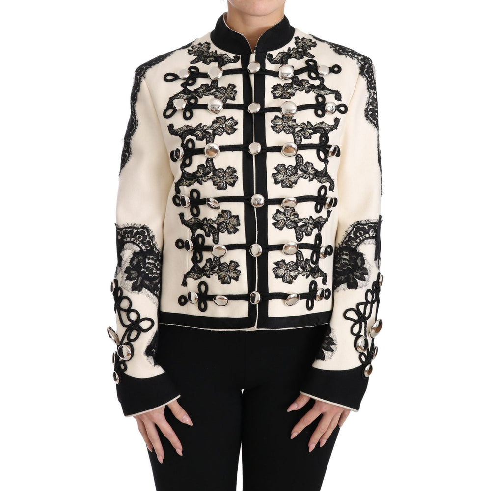 Dolce & Gabbana White Wool Black Floral Baroque Jacket