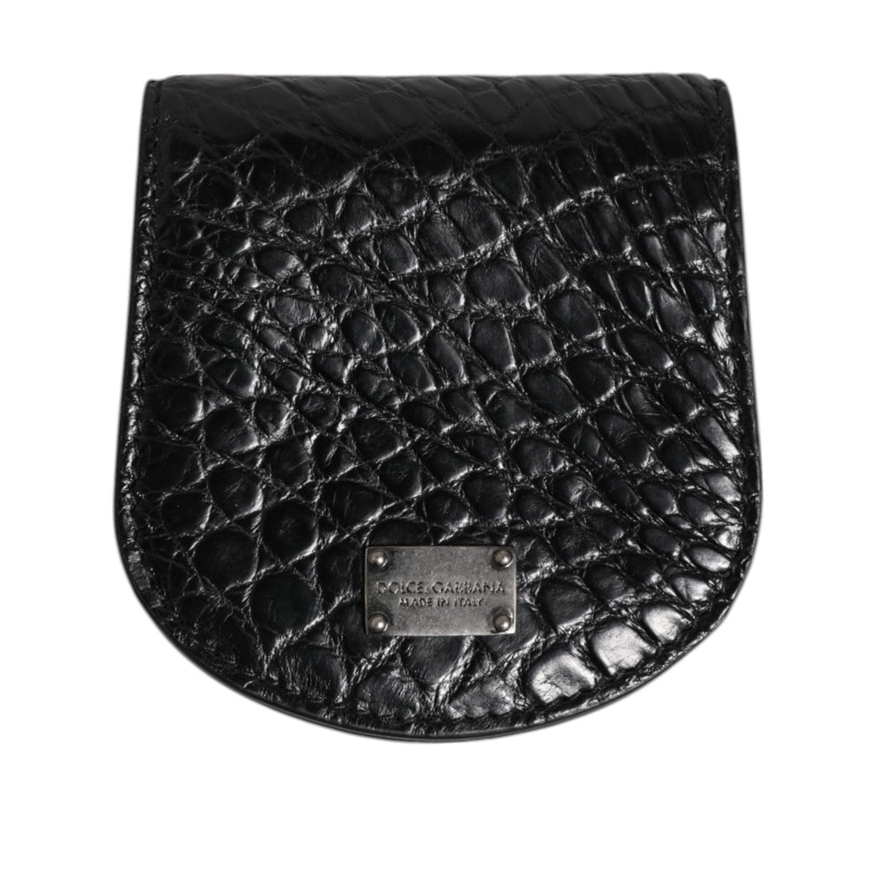 Dolce & Gabbana Black Exotic Skin Coin Condom Case Holder Pocket Wallet