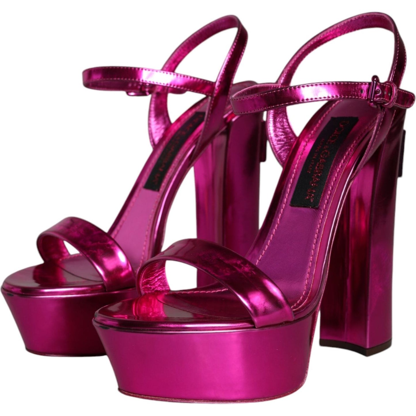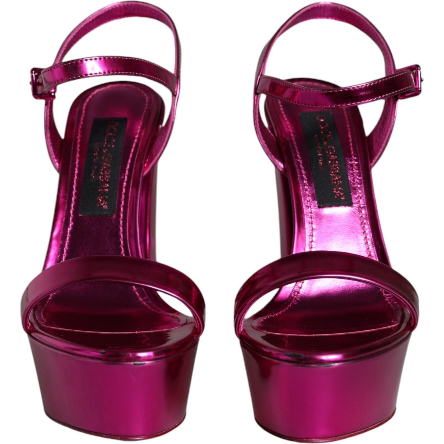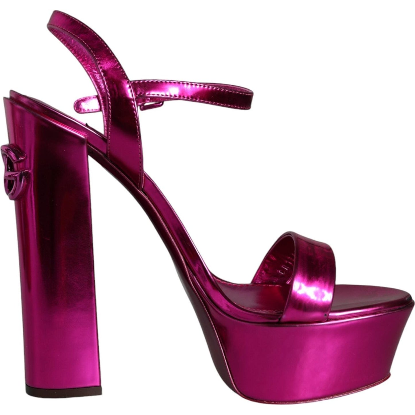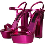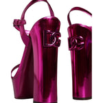 Dolce & Gabbana Fuchsia Leather Platform Logo Keira Sandals Shoes