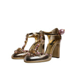 Dolce & Gabbana Gold Embellished Vally Heels Sandals Shoes