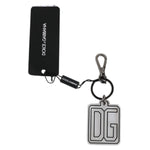 Dolce & Gabbana Gray Black DG Rubber Logo Silver Men's Keychain Keyring