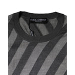 Dolce & Gabbana Gray Stripes Long Sleeve Round Neck Pullover Sweater