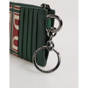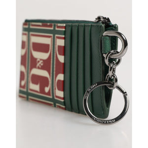 Absolutely stunning, 100% Authentic, brand new with tags Dolce & Gabbana green leather cardholder featuring logo print, side zip fastening, card slots and ring fastening.
