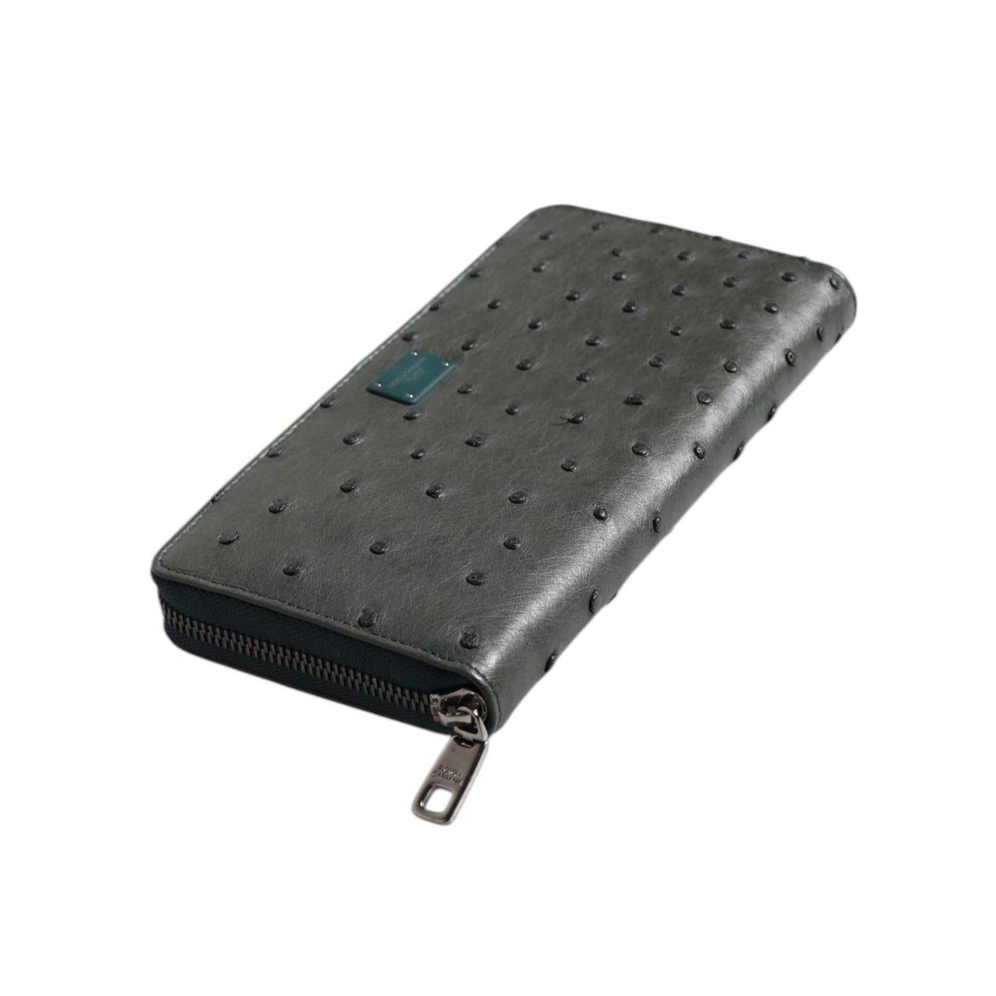 Dolce & Gabbana Green Ostrich Logo Plaque Zip Around Continental Wallet