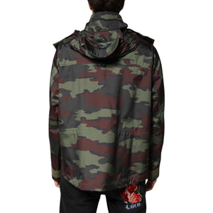 Dolce & Gabbana Multicolor Camouflage Button Hooded Jacket
