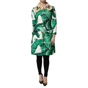 Dolce & Gabbana Multicolor Leaf Print Embellished Trenchcoat Jacket