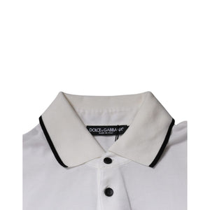 Dolce & Gabbana Off White Crown Cotton Collared Polo T-shirt