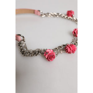 Gorgeous brand new, 100% Authentic Dolce & Gabbana Chain – Belt embelished with roses, crystals and lizzard structure leather in silver and pink.