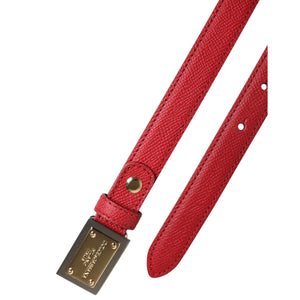 Dolce & Gabbana Red Leather Square Metal Buckle Cintura Belt