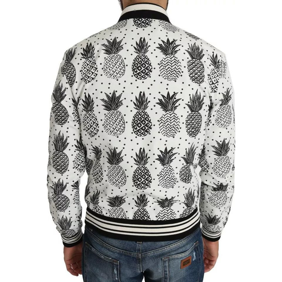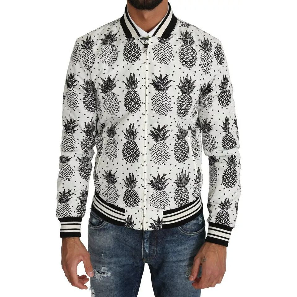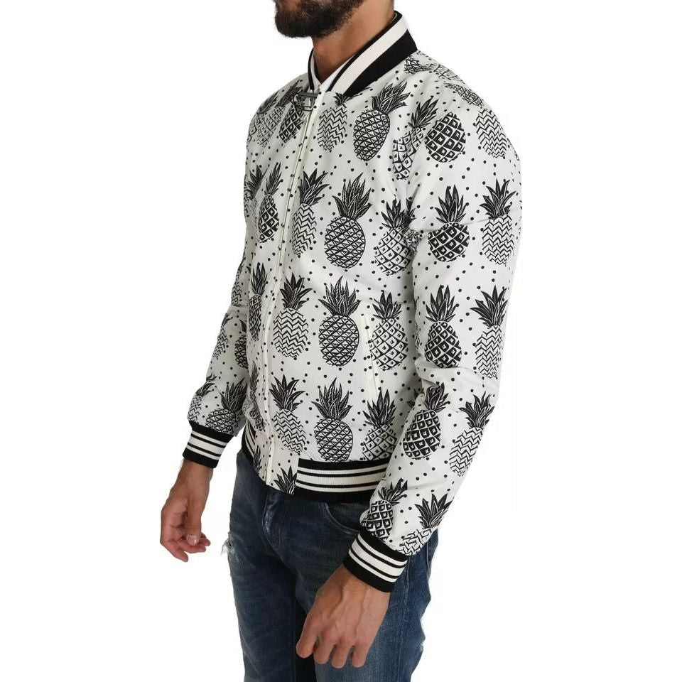 Dolce & Gabbana White Black Pineapple Bomber Coat Jacket