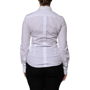 Dolce & Gabbana White Cotton Collared Long Sleeves Blouse Top
