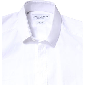 • Dolce & Gabbana White GOLD Cotton Long Sleeves Dress Shirt