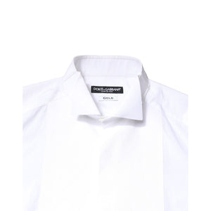 Dolce & Gabbana White GOLD Cotton Poplin Bib Formal Men Dress Shirt